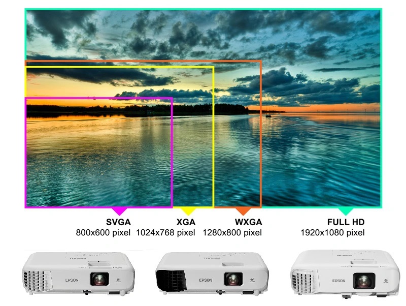 - Độ phân giải phù hợp: Vì máy chiếu sử dụng trong văn phòng sẽ trình chiếu văn bản là chính nên sẽ cần chọn mua máy chiếu độ phân giải từ SVGA (800 × 600) hoặc XGA (1024 × 768) hoặc có thể cao hơn. Độ phân giải tối thiểu này sẽ đảm bảo hình ảnh có độ nét tốt, văn bản rõ nét hơn.