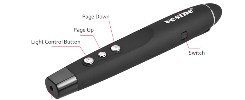 - Bút trình chiếu Vesine VP101 với đầu thu USB, chỉ việc cắm và chạy, sẽ là một trợ lý tuyệt vời cho giáo viên, người thuyết trình...
