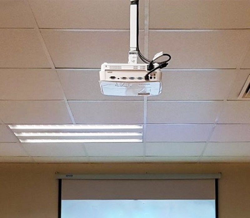 Hình ảnh thực tế của giá treo máy chiếu ngang tại lớp học