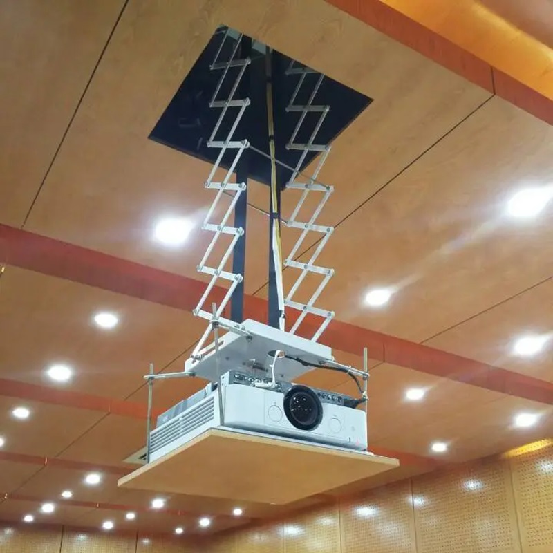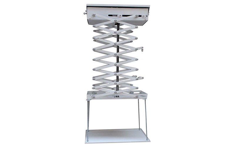 Bộ khung treo máy chiếu điện tử – giá treo máy chiếu điện được thiết kế với hệ thống thanh thép được đan cheo nâng đỡ bằng mô tơ điện được gắn liền với phần đế đặt máy chiếu. Ta dễ dàng thao tác nâng hạ bộ giá treo này thông qua bộ điều khiển gắn trực tiếp hoặc từ xa thông qua remote. Lợi thế của nó là ta có thể dấu gọn máy chiếu lên trần nhà bằng thạch cao, sàn gỗ khi khi không sử dụng giúp tránh bụi bẩn, đảm bảo tính thẩm mỹ.