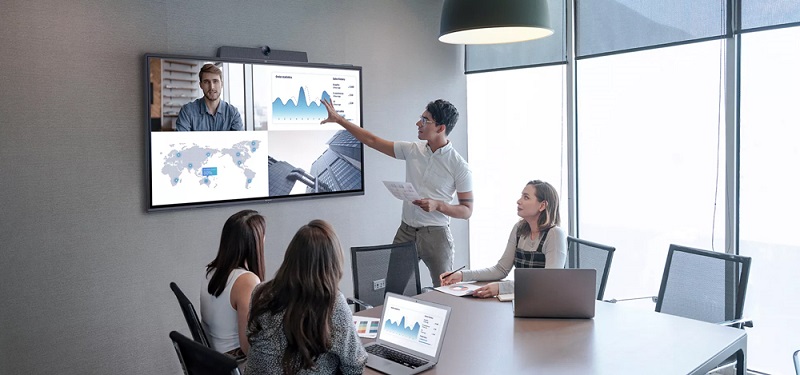 Với tính năng chia sẻ màn hình không dây chỉ với một cú nhấp chuột, người dùng hoàn toàn có thể trình chiếu nội dung lên màn hình lớn với 4 thiết bị cùng một lúc và 4 thiết bị khác có thể kết nối ở trạng thái chờ.