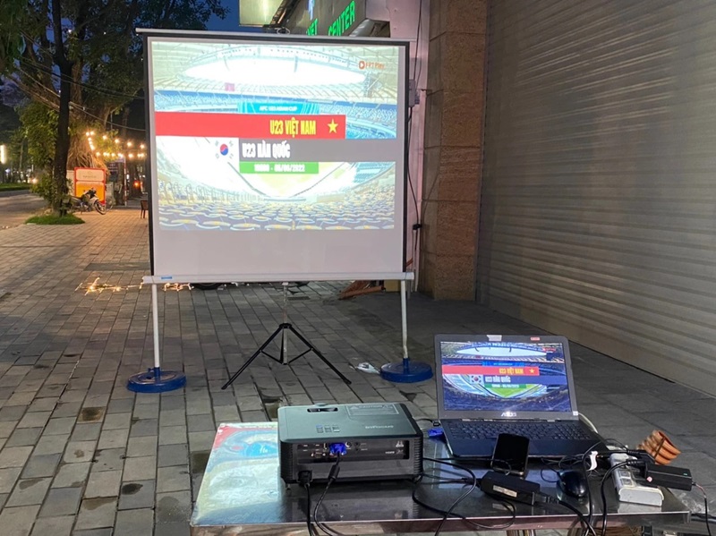 Cho thuê máy chiếu, màn chiếu xem bóng đá ngoài trời tại quán cà phê, quán ăn