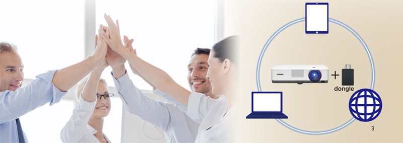 Bên cạnh đó, máy chiếu có khả năng trình chiếu lên khung hình siêu rộng lên đến 300 inch, mà vẫn đảm bảo chất lượng hình ảnh đẹp mắt, đáp ứng mọi nhu cầu trình chiếu phổ thông hiện nay: Giảng dạy, hội họp, kinh doanh cafe, xem bóng đá, …