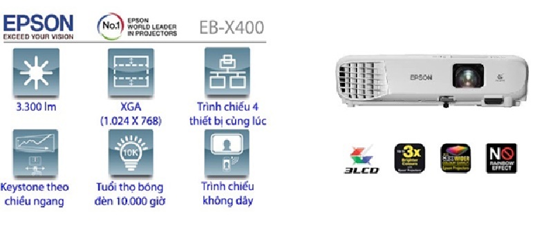 Công nghệ 3LCD hiện đại trang bị trên Epson EB-X400