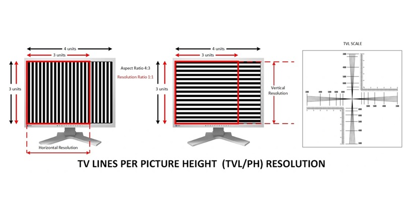 Do sử dụng công nghệ quét ngang – công nghệ sử dụng những đường kẻ thẳng đứng đen, trắng xen kẽ vào nhau và tạo nên một khung hình, TVL xác định bằng tổng số đường thẳng đứng mà ta đếm được, cả đen và trắng. Một thiết bị có độ phân giải là 600TVL có nghĩa là có 300 dòng thẳng đứng sáng và 300 dòng thẳng đứng tối.