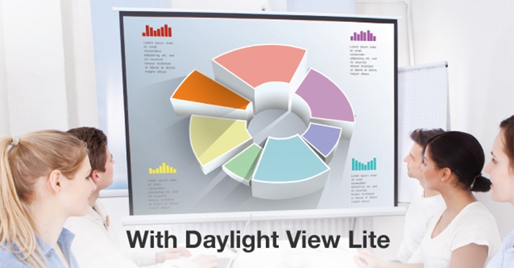 - Chức năng Daylight View Lite: Chức năng Daylight View Lite trên điều khiển (Remote) sử dụng đơn giản chỉ bằng một lần bấm. Khi điều kiện trình chiếu nơi nhiều ánh sáng, chức năng này giúp cho hình ảnh được cân bằng, màu sắc tươi sáng cho bài giảng, bài thuyết trình trong phòng và nơi có ánh sáng cao.