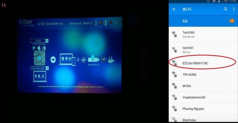 - Bước 2: Kết nối thiết bị di động thông minh với phụ kiện EzCast thông qua mạng Wifi (EzCast và thiết bị thông minh phải sử dụng chung một mạng Internet).