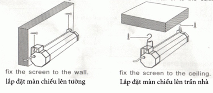 - Làm theo hướng dẫn đi kèm màn chiếu điện để lắp đặt đúng cách.
