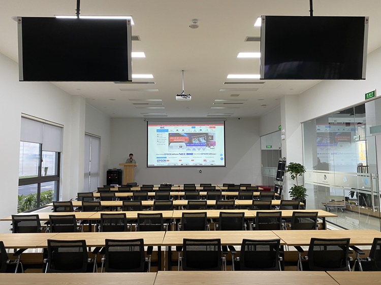 Lắp đặt màn chiếu điện tại phòng học siêu rộng