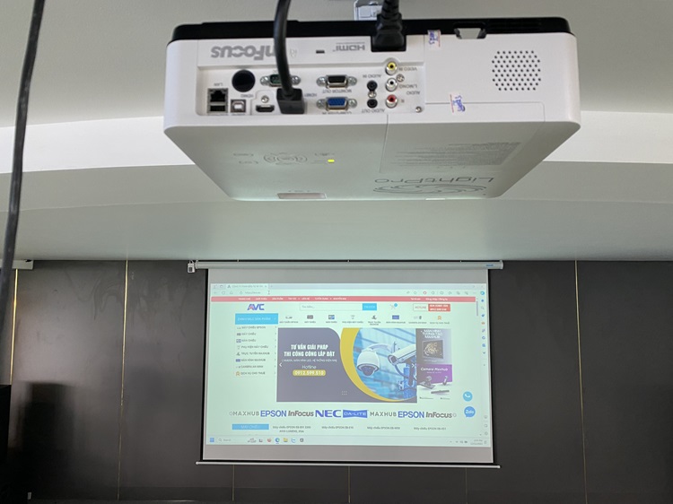 - Cấp nguồn tín hiệu từ đường dây dẫn vào màn chiếu.