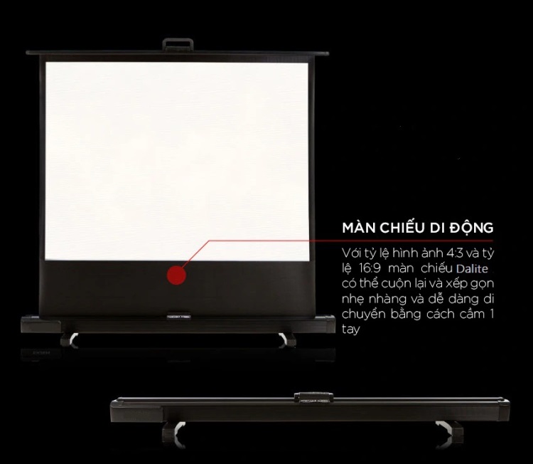 Với lợi thế nhỏ gọn, màn chiếu để sàn Dalite 60 inch có thể dễ dàng mang đi lại giữa nhiều không gian, sản phẩm là lựa chọn tối ưu cho nhiều sự kiện: trình chiếu trong lớp học, hội nghị, hội thảo, quán cafe bóng đá, chiếu phim gia đình…