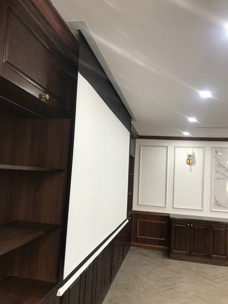Hình ảnh lắp đặt hoàn thiện màn chiếu điện âm trần Dalite