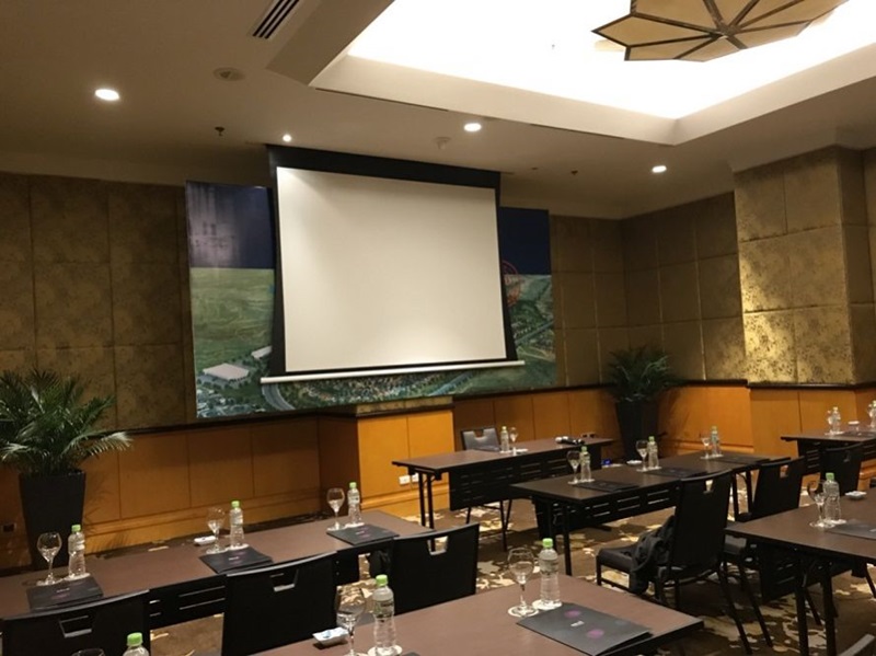 Hình ảnh thực tế sau khi lắp đặt hoàn thiện màn chiếu Tab Tension Dalite tỷ lệ 4:3