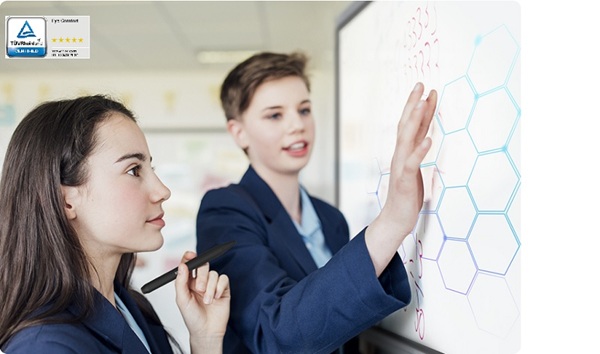Các bề mặt tiếp xúc của màn hình như kính cảm ứng, bút cảm ứng và điều khiển từ xa được phủ lớp bảo vệ kháng khuẩn đạt chứng nhận SGS, SIAA và TÜV. Điều này giúp ngăn ngừa sự lây lan vi khuẩn, tạo môi trường học tập sạch sẽ và an toàn hơn.