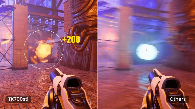Máy chiếu BenQ TK700STi là sản phẩm có độ trễ đầu vào thấp nhất trên thế giới, nâng cao trải nghiệm nhập vai khi chơi game của người dùng. Độ trễ đầu vào 4ms* cực thấp sẽ biến chuyển độ phản ứng thị giác - thính giác và suy nghĩ của bạn thành hành động mà không có bất kỳ sự chậm trễ nào.