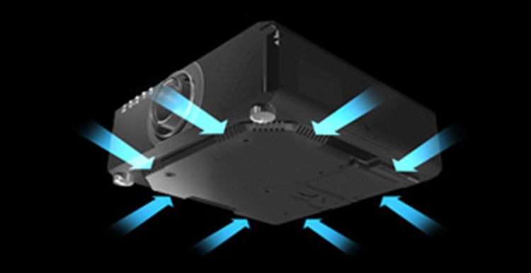 Máy chiếu Panasonic PT-DX820B có hệ thống làm mát bằng chất lỏng giúp làm giảm tiếng ồn hoạt động xuống chỉ còn 30 dB khi chiếu ở công suất lớn trong nhiều giờ liên tục. Công nghệ này sẽ giúp máy không bị quá nóng khi trình chiếu trong thời gian dài. Máy chiếu hút không khí từ phía dưới của thiết bị và xả nó từ phía sau, loại bỏ các lỗ hở ở phía trước và bên để loại bỏ rò rỉ tiếng ồn. Các quạt mới được phát triển cũng được định vị để cho phép quạt hoạt động hiệu quả với tốc độ quay chậm hơn và ít nhiễu hơn.
