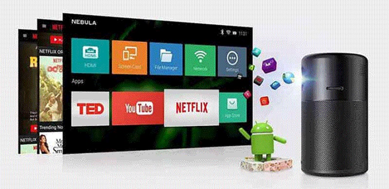 Thương hiệu Anker nổi tiếng là thương hiệu hàng đầu trong thị trường phụ kiện máy tính và điện thoại di động gần đây đã ra mắt sản phẩm máy chiếu kiêm loa Bluetooth sử dụng hệ điều hành Android là phụ kiện cho điện thoại thông minh với tên gọi Nebula Capsule.