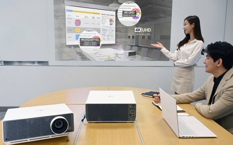 - Kinh doanh: Máy chiếu Laser được sử dụng trong các cuộc họp, hội nghị, thuyết trình,... giúp truyền tải thông tin hiệu quả và thu hút người tham dự.