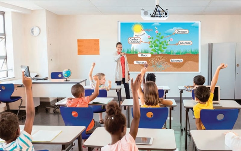 - Giáo dục: Máy chiếu Laser được sử dụng rộng rãi trong các trường học, giúp nâng cao chất lượng giảng dạy và học tập.