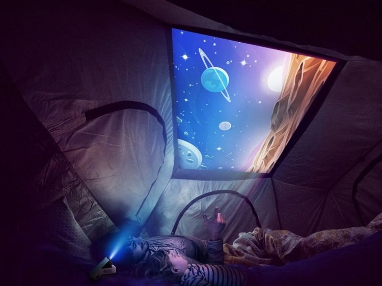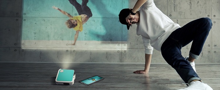 Thiết kế của chiếc máy chiếu này còn có thêm phần chân đế cho phép điều chỉnh góc độ chiếu thích hợp. Bạn có thể chiếu lên trần nhà, bề mặt ngang hay chéo đều dễ dàng. Phần nắp máy có thể thay đổi màu sắc: vàng – xanh – ghi tùy theo sở thích người dùng.