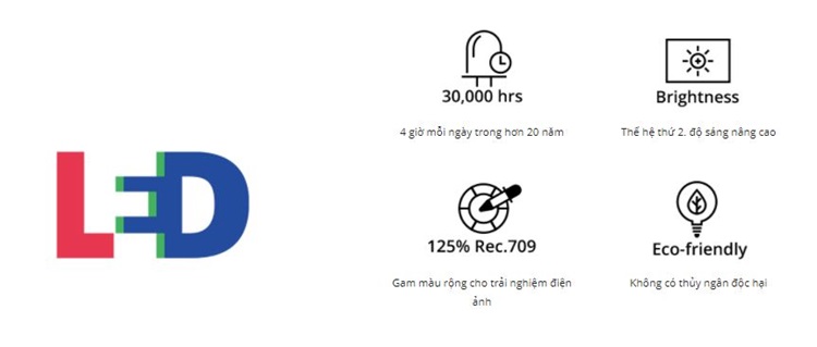 Bên cạnh đó, máy chiếu sở hữu cường độ sáng 1200 led lumens, mang đến khả năng trình chiếu mạnh mẽ trong nhiều không gian, kể cả phòng chiếu có ánh sáng phức tạp. Chất lượng hình ảnh chiếu ra đảm bảo luôn sáng rõ, không mờ hình hay mất hình. Công nghệ Cinema SuperColor+™ tích hợp trên sản phẩm với độ phủ màu 125% dải màu Rec.709 cho hình ảnh sống động, chân thực.