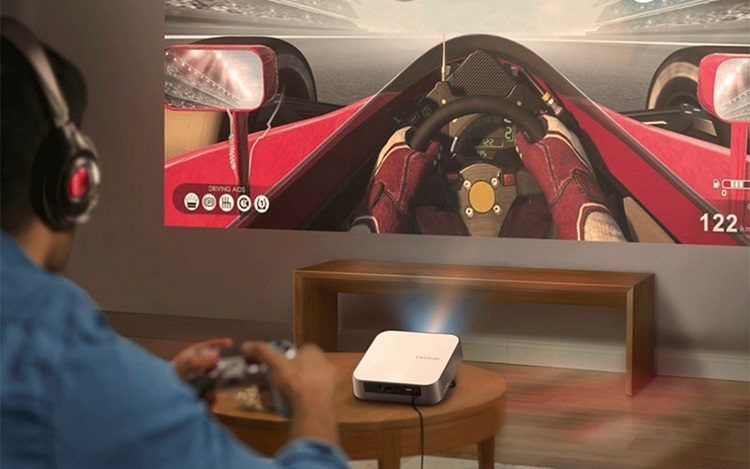Ngoài ra, máy chiếu có khả năng trình chiếu lên khung hình lớn ở khoảng cách gần. ViewSonic M2e có thể chiếu lên khung hình 80 inch ở khoảng cách 2.1m và 2.68m với khung hình 100 inch.