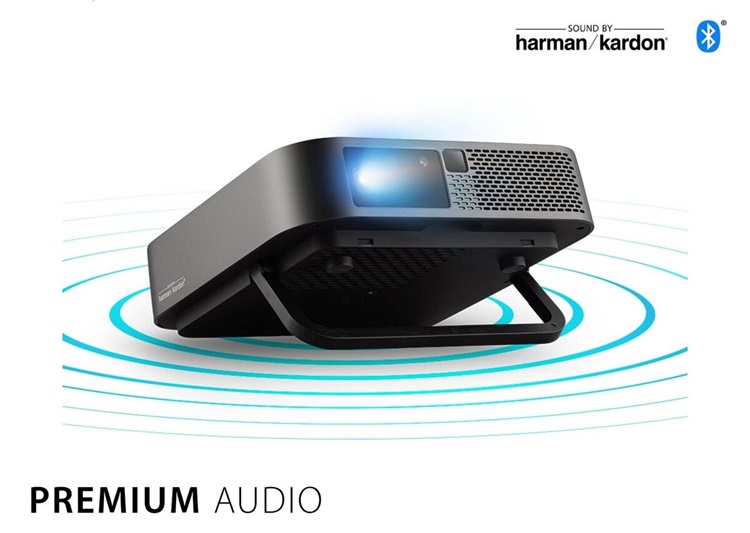 Bên cạnh đó, ViewSonic M2e tích hợp khả năng kết nối Bluetooth, bạn có thể sử dụng máy chiếu như một chiếc loa Bluetooth. Với hệ thống loa Harman / Kardon hiện đại, đảm bảo chất lượng âm thanh cho ra luôn sinh động, cuốn hút. Không chỉ mang đến chất lượng hình ảnh đẹp mắt, máy chiếu ViewSonic M2e còn cung cấp âm thanh thu hút, hấp dẫn.