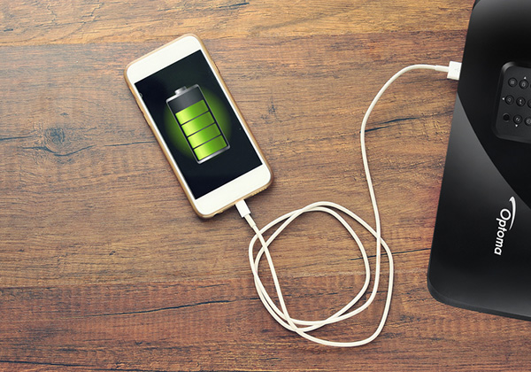 Máy chiếu Optoma X400LVE có thể sạc cho điện thoại