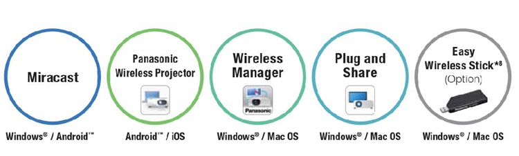 Máy chiếu hội trường Panasonic PT-EZ770E được trang bị đa dạng các công nghệ kết nối không dây khác nhau, mang đến sự đa dạng trong lựa chọn của khách hàng: