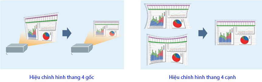 Ngoài ra, sản phẩm được trang bị bộ hiệu chỉnh hình ảnh tự động hiện đại, cho phép máy chiếu tự động chỉnh vuông hình ảnh theo hình thang cân. Đây là tính năng hữu ích, giúp người dùng tiết kiệm thời gian trong việc căn chỉnh hình ảnh.