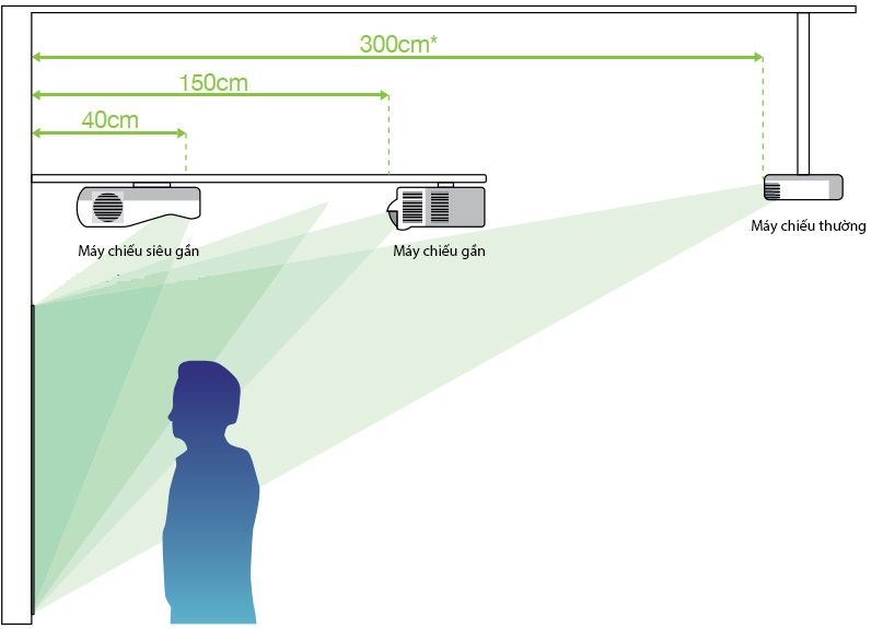Khoảng cách chiếu siêu gần so với các sản phẩm máy chiếu thông thường