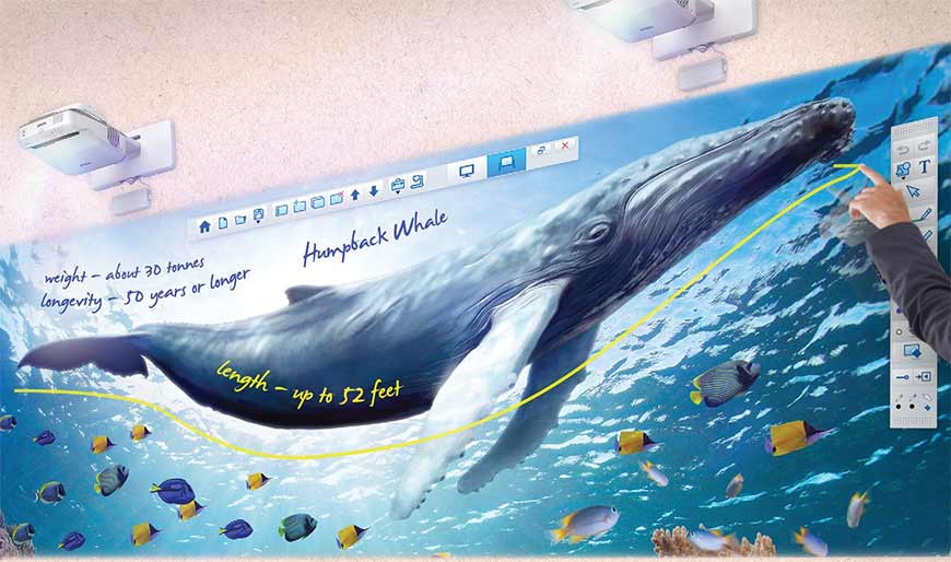 Khả năng tương tác trực quan là một trong những tính năng quan trọng nhất của máy chiếu siêu gần nói chung hay máy chiếu siêu gần Epson EB-695WI nói riêng.