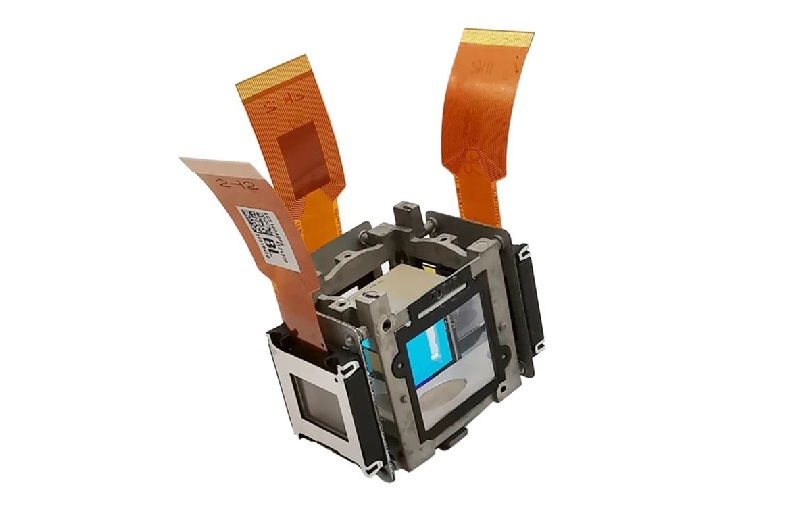 Tổ hợp LCD Panel máy chiếu được hợp thành từ 3 tấm LCD tương ứng với 3 màu đỏ, xanh dương, xanh lá và được gắn kết với nhau thành một cụm có đế bằng kim loại có gắn kính lọc để tạo ra màu sắc.