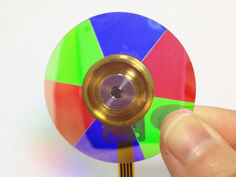 Color Wheel máy chiếu là một thiết bị lọc màu của máy chiếu, thường có hai loại chính là với 3 màu (RGB) hoặc 6 màu (RGBRGB) tướng ứng với R - Red (Đỏ), G - Green (Xanh lá), B - Blue (Xanh lam). Khi khởi động máy chiếu, bánh xe màu này sẽ quay tròn và kết hợp với nguồn sáng đã được xử lý từ bóng đèn tới chíp DMD ra giúp tạo hình ảnh trình chiếu khi đi qua ống Lens.