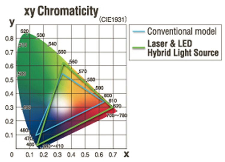 - Tái tạo màu sắc rõ nét: Cải tiến lớn về độ tinh khiết màu nhờ nguồn sáng mới đã cải thiện đáng kể khả năng tái tạo màu. Không chỉ màu rõ hơn và đẹp hơn mà cả hình ảnh được chiếu trông cũng sáng hơn nhờ những hiệu ứng trực quan của màu có độ tinh khiết cao.