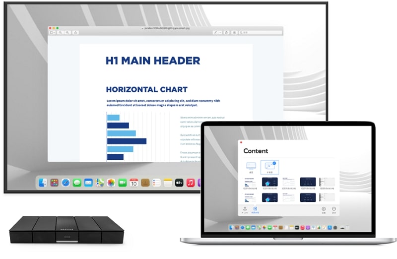 Chỉ với 1 click chuột, video và hình ảnh không mất dữ liệu có thể được trình bày trong 0,15 giây. Một hình ảnh có thể được hiển thị đồng thời trên hai màn hình. Công nghệ tương tác đa màn hình MAXHUB hỗ trợ chiếu cùng lúc 4 thiết bị đồng thời trong thời gian thực, hiển thị cho bạn so sánh dữ liệu rõ ràng. Hoạt động đồng bộ với thiết bị di động làm cho trải nghiệm thuyết trình và giao tiếp ngoài sức tưởng tượng của bạn.
