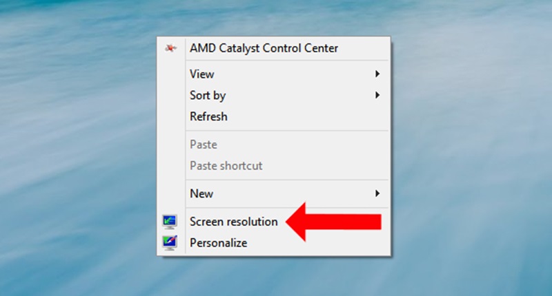 Bước 2: Nhấn chuột phải ở ngoài màn hình rồi nhấn vào Screen resolution.