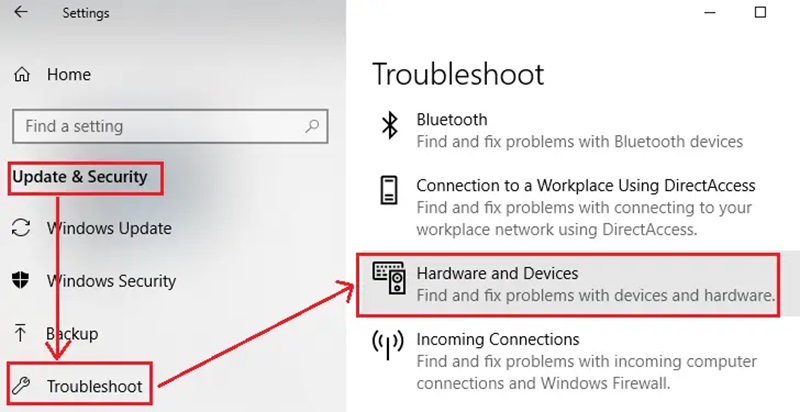 Chạy Hardware and devices troubleshoot